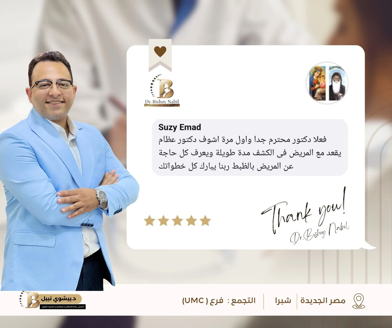 دكتور بيشوي نبيل هو واحد من افضل أطباء العظام في مصر و الوطن العربي حيث يتميز دكتور بيشوي في مهارتة الشديدة فكل ما يخص العظام و العمود الفقري حيث اجري دكتور بيشوي اكثر من ٢٠٠٠ جراحة ناجحة في مجال العظام و العمود الفقري